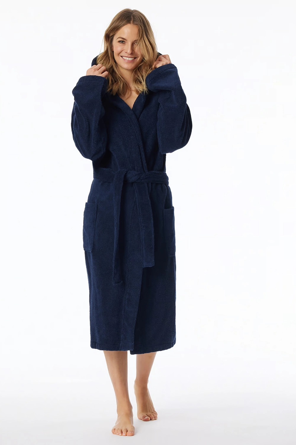 Kuschelige Basics mit Wohlfühlgarantie: Dieser dunkelblaue Damenbademantel verspricht herrlich gemütliche Stunden in bester SCHIESSER-Qualität! Große Taschen und die praktische Kapuze schenken dem Bademantel dabei eine Extra-Portion Behaglichkeit, die in weichem Frottee besonders soft auf der Haut spürbar wird. Ideal für Damen, die nach dem Bad oder am Morgen am liebsten in bester, wohliger SCHIESSER-Qualität entspannen! * mit kuscheliger Kapuze * große Taschen für Extra-Komfort * Bindegürtel * Gesamtlänge: 120 cm * in weicher * gemütlicher Frottee-Qualität * 100% Baumwolle