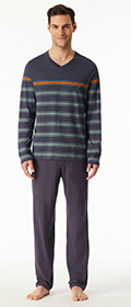 Deine Nachtwäsche soll bequem und nachhaltig sein? Wie wäre es mit einem Schlafanzug aus unserer Casual Nightwear Serie? Hier trifft Bio-Baumwolle auf lässige Passformen, smarte Details und einen easy Look; beste Qualität für entspannte Nächte! * langer Herrenschlafanzug * Shirt mit V-Ausschnitt und platzierten Ringeln * Hose in Uni mit Bindeband * in weicher Single-Jersey-Qualität mit 100 % Organic Cotton