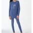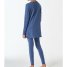 jeansblauer, langer Mädchenschlafanzug mit Pferdemotiv auf der Brust und Leggings mit Sternen-Druck